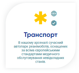 Наш спецтранспорт оснащений всім необхідним обладнанням та медикаментами для надання невідкладної допомоги, таким чином, ми створюємо максимально безпечні умови для швидкого транспортування в обрані медичні заклади.