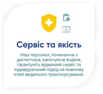 На кожному етапі перевезення ми турбуємось про комфорт та безпеку пацієнтів, а всі медичні маніпуляції відповідають вимогам Українського законодавства та Європейської спільноти.